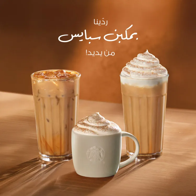 مشروب الخريف اللي يحبه قلبك! الخريف ما يكمل إلا ويا بمبكن سبايس لاتيه، حار أو مثلج. واستانس ويا بمبكن سبايس فرابتشينو. الحين جاهز حق مشروب الخريف اليديد؟ بمبكن سبايس ماتشا لاتيه مثلج، مِكس خريفي يجمع بين شاي الماتشا اللذيذ ونكهات الخريف العجيبة، والطعم؟ خيااال!